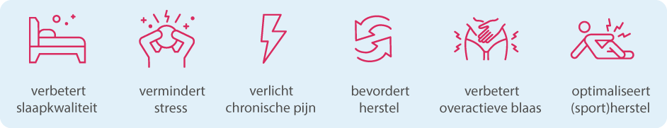 Geschikt voor diverse klachten, waaronder chronische pijn, stress en slaap- en blaasproblemen.